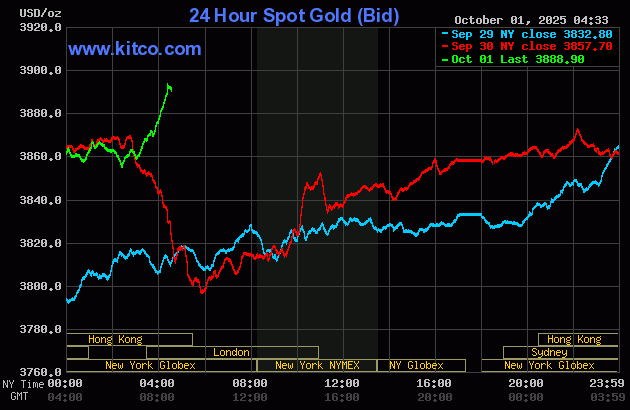 Trên thị trường thế giới, giá vàng tiếp tục leo lên mức cao mới mọi thời đại sát $3900 khi chính phủ Mỹ không thể đạt thỏa thuận chi tiêu.