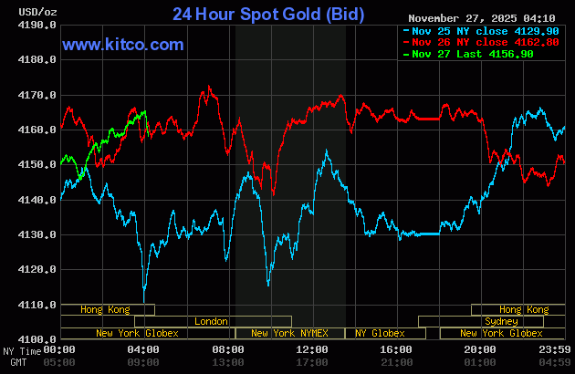 Giá vàng neo ở mức cao khi giá vàng quốc tế ổn định trên vùng giá $4150/oz. Nhà đầu tư tiếp tục đặt cược vào xu hướng giảm lãi suất của Fed vào tháng 12 cũng như các rủi ro về đia chính trị. Vàng đang trong xu hướng kết thúc năm rực rỡ nhất trong nhiều thập kỉ khi đã tăng hơn 50% từ đầu năm.