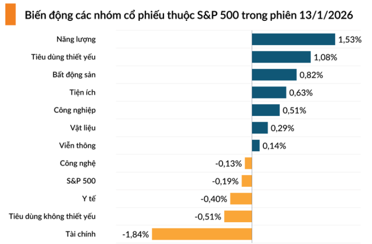 Đóng cửa phiên giao dịch thứ Ba ngày 13/1, chỉ số S&P 500 giảm 0,19%, chốt phiên tại 6.963,74 điểm.