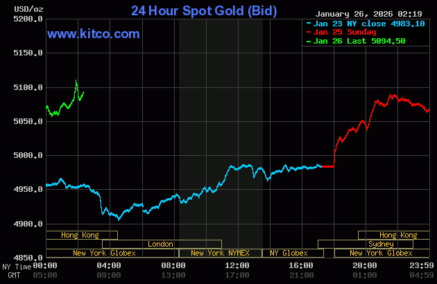 Cập nhật Giá Vàng – Bạc sáng 26/1: Tăng dựng đứng, Vàng lên sát $5100 – Bạc phá mốc 108$ dễ dàng