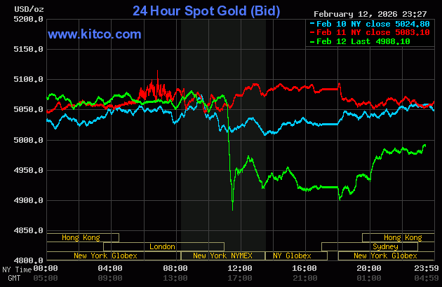 Giá vàng thế giới đêm qua bất ngờ giảm khá mạnh, có lúc mất ngưỡng $4900. Sang phiên Á hôm nay, giá vàng hồi phục khá mạnh, đang tiếp cận lại mốc $5000.
