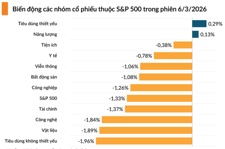 Chỉ số S&P 500 giảm 1,33% xuống 6.740,02 điểm.