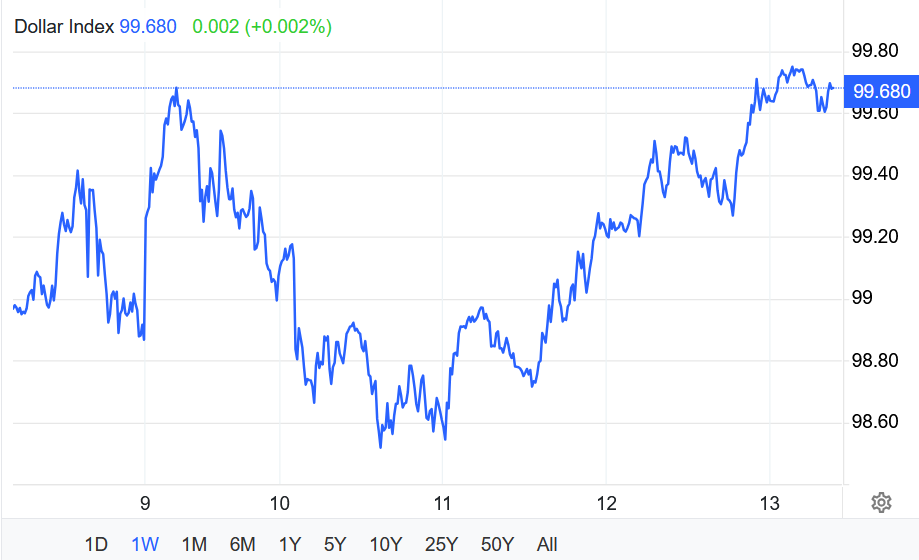 Chỉ số USD đã vượt mức 99,6 vào thứ Năm, kéo dài đà tăng sang phiên thứ tư liên tiếp và đạt mức cao nhất kể từ tháng 11/2024 trong bối cảnh xung đột với Iran leo thang.