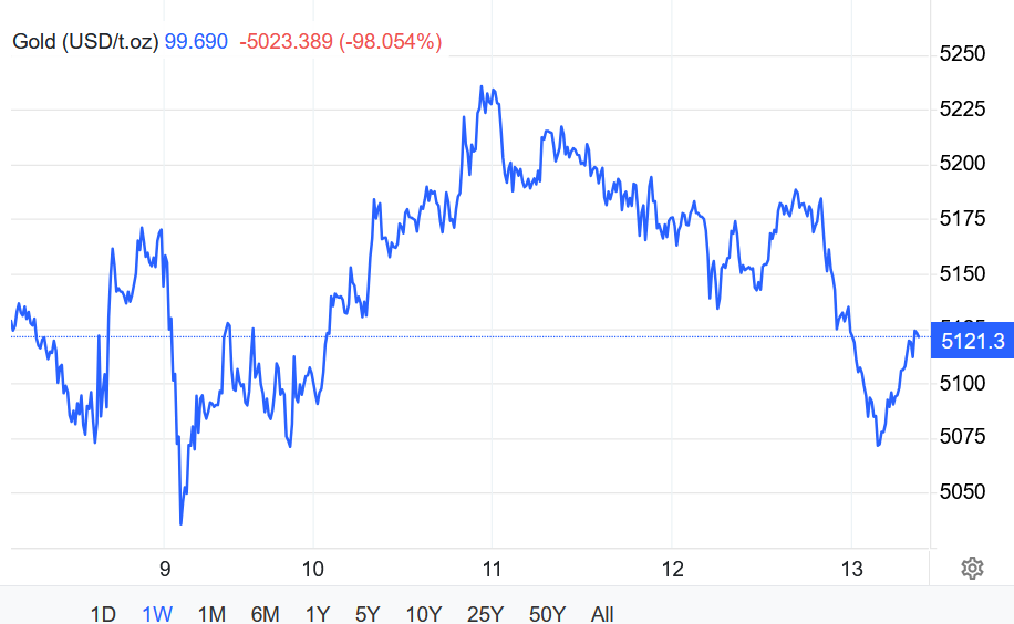 Hợp đồng vàng kỳ hạn Mỹ giao tháng 4 giảm 1% xuống $5125,80/oz.