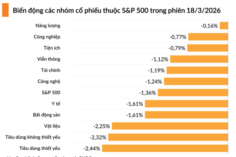 Chỉ số S&P 500 giảm 1,36% xuống 6.624,70 điểm.