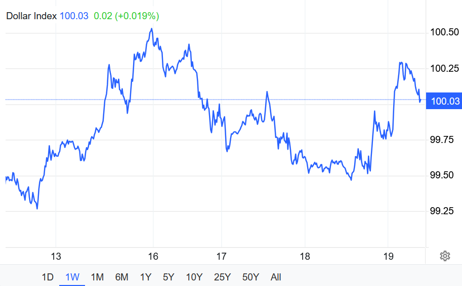 Chỉ số USD đã vượt mốc 100 vào thứ Tư khi các nhà giao dịch đánh giá quyết định chính sách tiền tệ mới nhất của Cục Dự trữ Liên bang (Fed).