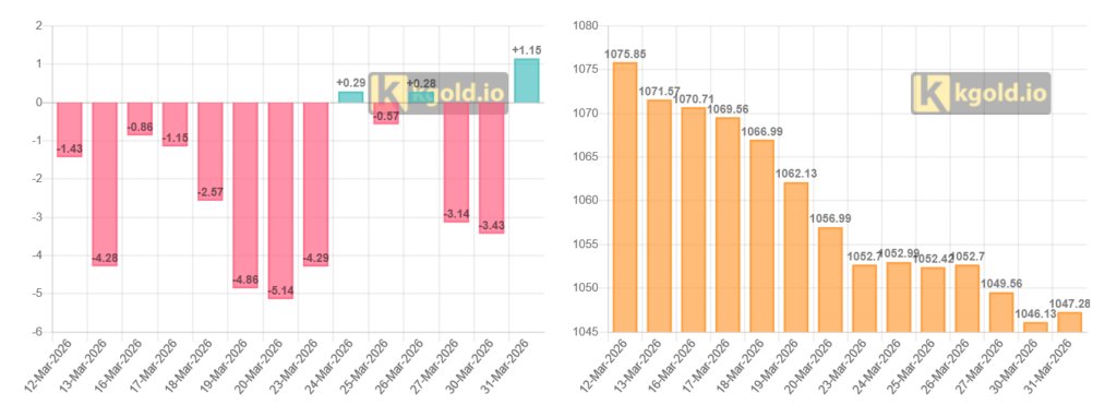 Quỹ tín thác vàng hàng đầu thế giới SPDR Gold Trust quay lại mua ròng 1,15 tấn vàng trong phiên ngày 31/3. Theo đó lượng vàng nắm giữ của quỹ tăng lên 1047,28 tấn.