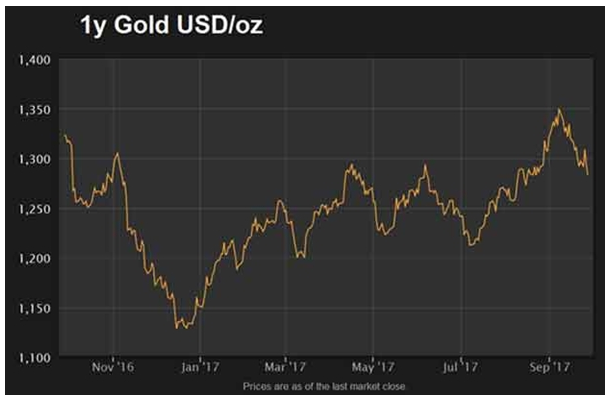 Theo đó, giá vàng trong nước đắt hơn thế giới 1,5 triệu đồng/lượng (tỷ giá ngân hàng Vietcombank ngày 04/10/2017 lúc 11h10 chưa kể thuế và phí).