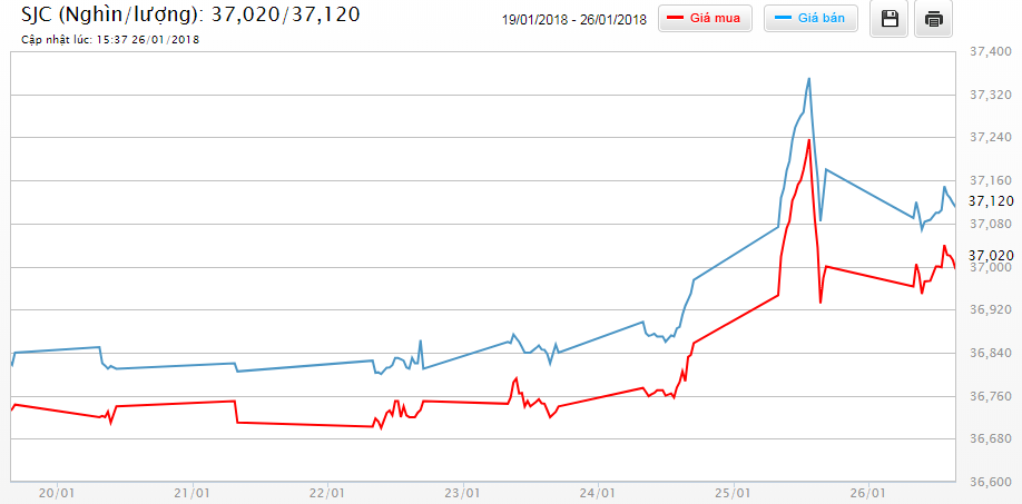 Bảng giá vàng 9h30 sáng 27/1: Ổn định trên ngưỡng 37 triệu