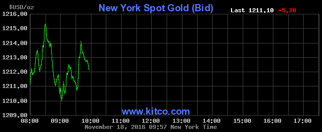 Sáng nay 7:00 theo giờ Việt Nam, giá vàng giao ngay trên sàn Kitco đứng tại 1.207,4USD/oz, giảm 0,7% so với chốt phiên trước.