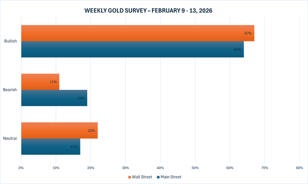 Khảo sát Kitco News Weekly Gold Survey cho thấy tâm lý tại Phố Wall đã đảo chiều tích cực, trong khi nhà đầu tư cá nhân vẫn giữ quan điểm tăng giá nhưng chưa hoàn toàn quên cú sốc tuần trước.