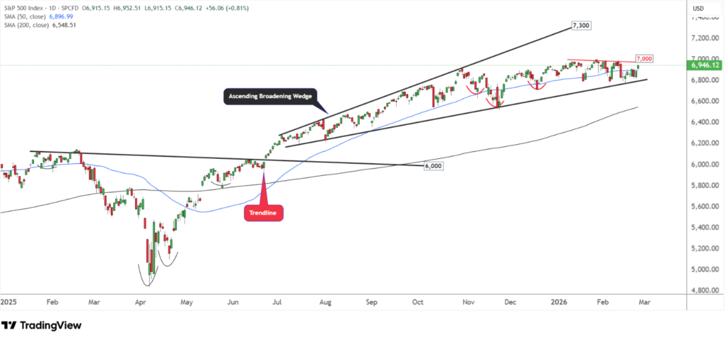 S&P 500 đang tiến sát mốc tâm lý 7.000 điểm.